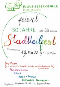 Das Schulfest zum 50. Jubiläum der JLS werden wir am Donnerstag, den 19. Mai 2022 feiern!