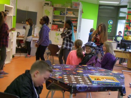 In unserer Bibliothek kann man lesen (Bücher und Zeitschriften), allein oder mit anderen etwas für die Schule vorbereiten oder am PC etwas recherchieren. Der Raum wird von Bibliothekskräften beaufsichtigt.