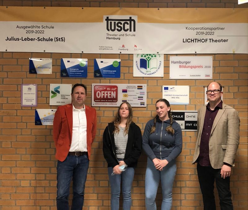 Schulleiter Peter Bulicke, Schüler*innen Gina und Josefine, Diversitätsbeauftragter Frank Thies